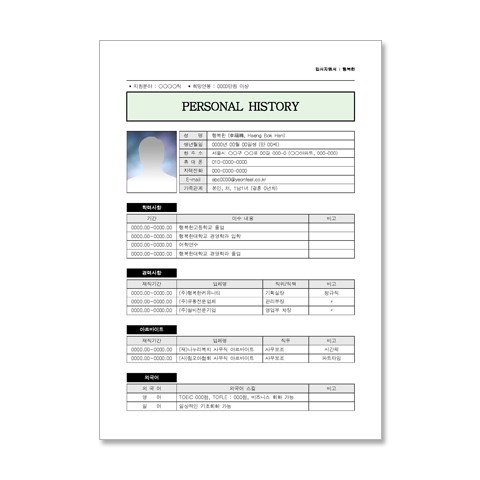 기존 문방구 이력서에서 탈피해 깔끔하면서 차별되고, 단정한 이력서를 원하시는 분들께 추천합니다. 복잡한 기능을 사용하지 않았기에 초보수준이더라도 재 편집이 가능합니다. 자기소개서 작성시 내용 작성에 대한 의견을 넣어 두었습니다.