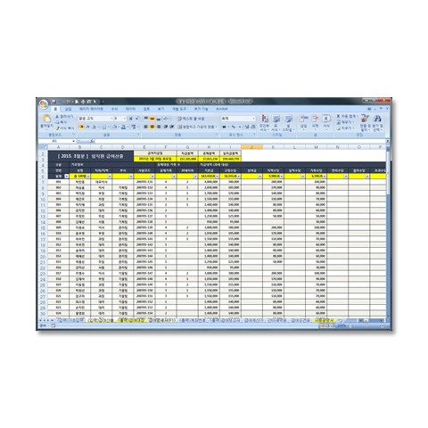 임직원들의 연번, 성명, 직위, 공제가족수, 기본급, 수당 등을 입력하는 것 만으로 급여계산이 사실상 끝납니다.